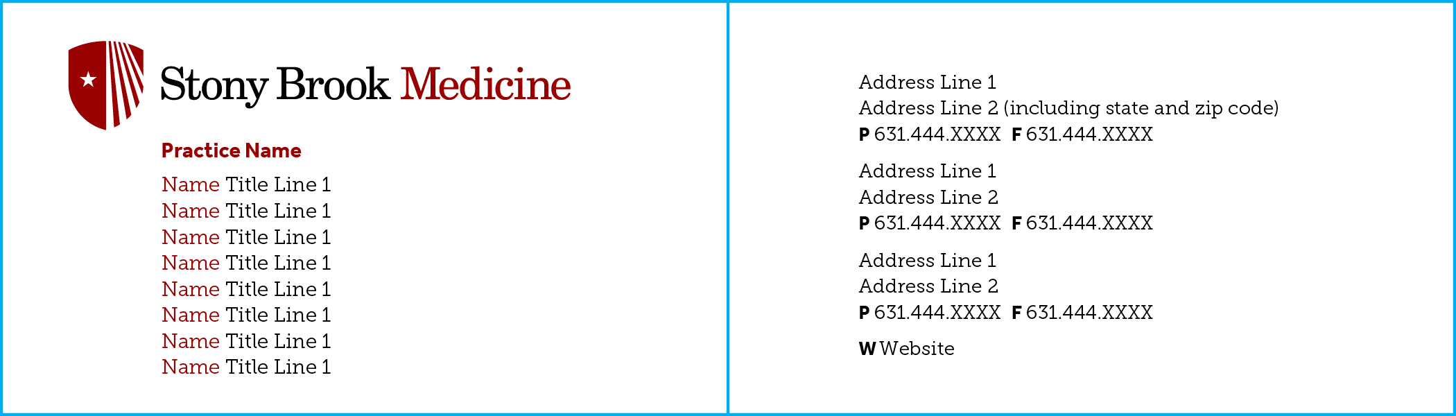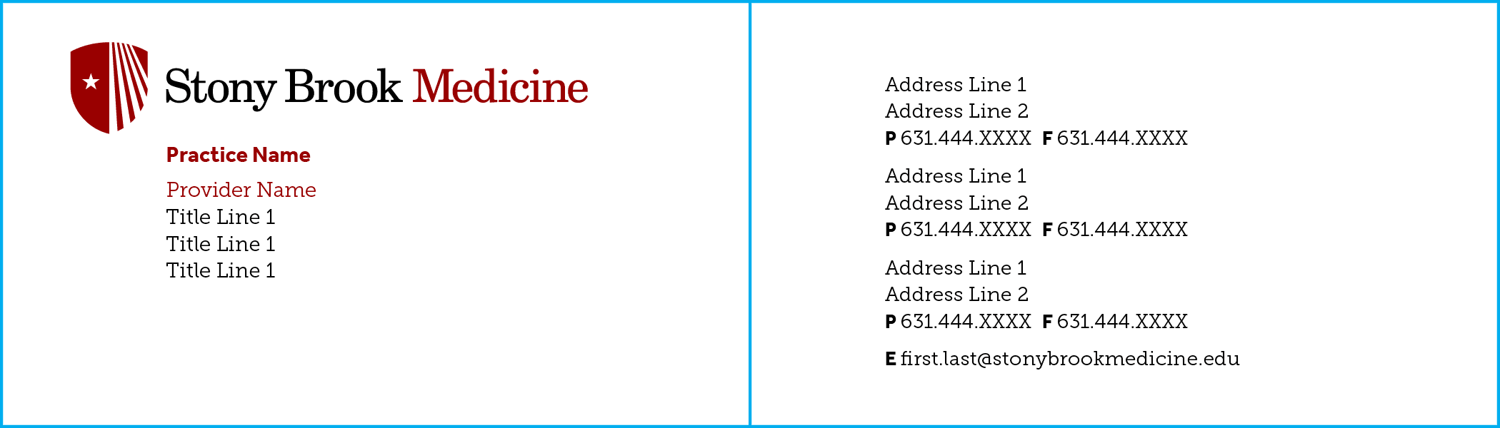 For all other questions about stationery please contact Carley Cori (Weinstein), Director of Social Media and Creative Services: Carley.Weinstein@stonybrookmedicine.edu